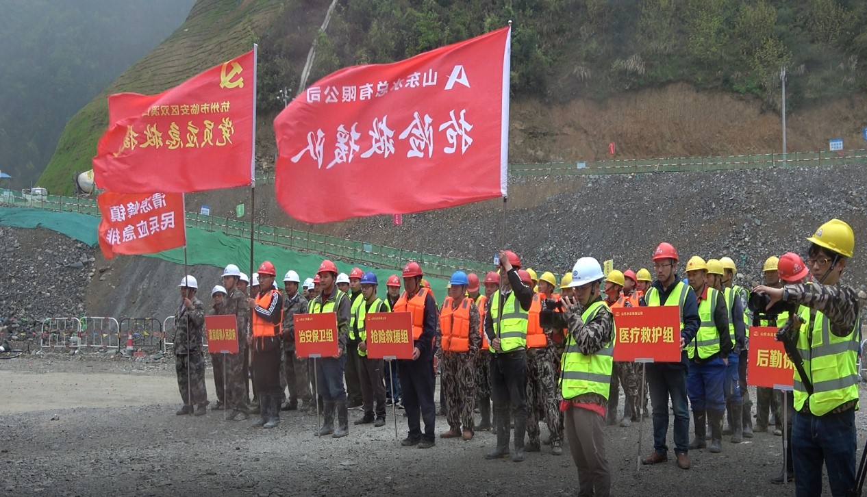 为进一步增强杭州市临安区双溪口水库工程参建人员防汛防台和消防安全意识,强化应急预案保障措施落实,提升参建各方应对突发性洪水和火灾等事件的应急能力,确保汛期施工人员生命财产安全。4月14日上午,在即将入汛之际,项目法人杭州鲁润水电开发有限公司组织各参建单位在双溪口水库工程现场开展了2021年防汛防台和消防应急救援演练活动,近70人参与现场演练。