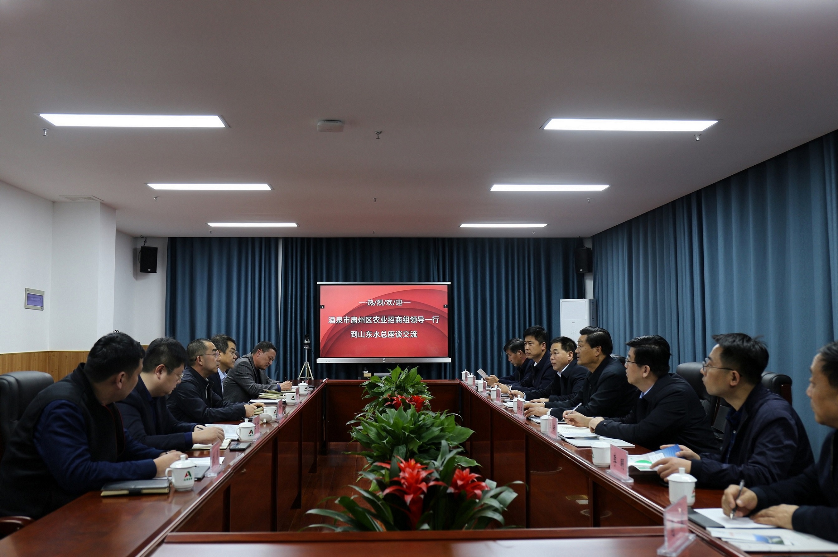 袁英杰对肃州区农业招商组一行表示热烈欢迎,并汇报了当前水总的发展情况,表达了对肃州区农业、水资源等方面的投资建设意向。
