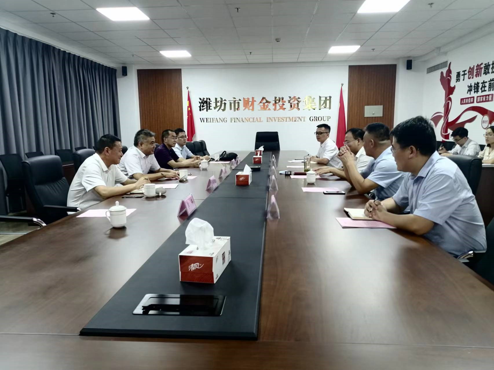 公司党委书记、董事长刘深远一行到潍坊市财金投资集团开展商务洽谈