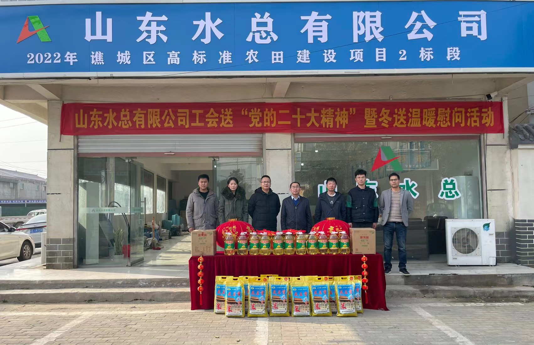 公司党委委员、副总经理袁英杰到第一分公司2022年谯城区高标准农田建设-2 标段开展送“党的二十大精神”暨冬送温暖慰问活动