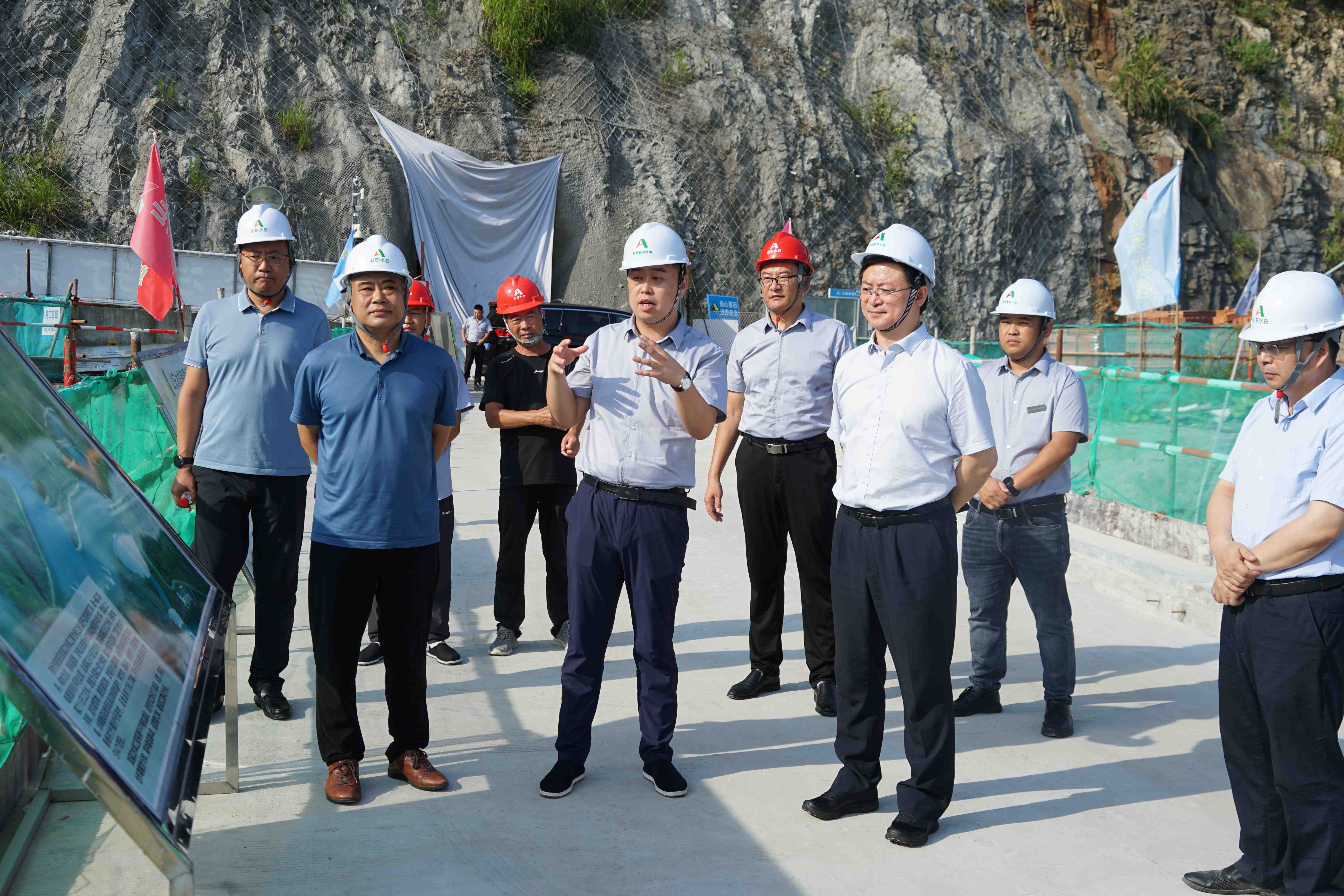 8月10日,山东高速集团总工程师、路桥股份党委书记、董事长周新波,路桥股份总经济师安耀峰莅临双溪口水库项目开展调研指导工作。公司党委书记、董事长刘深远,党委委员、副总经理付海华及鲁润公司、第六分公司相关人员陪同调研。