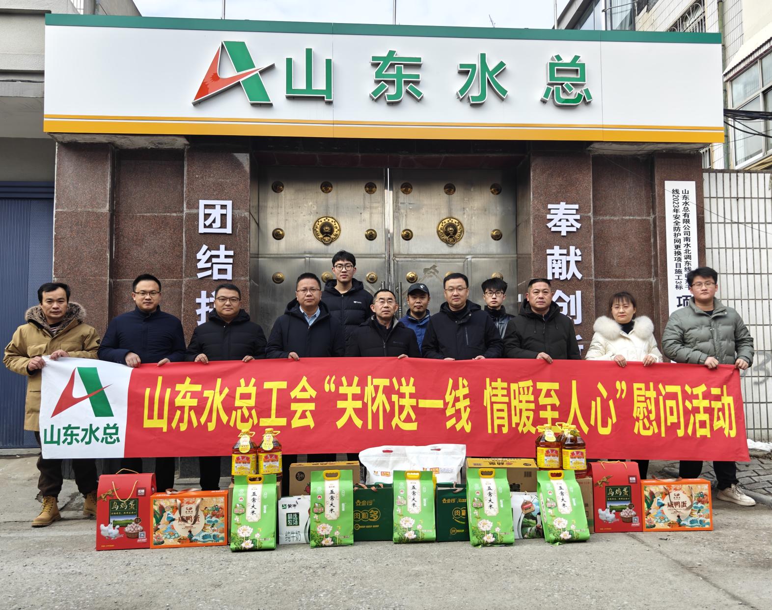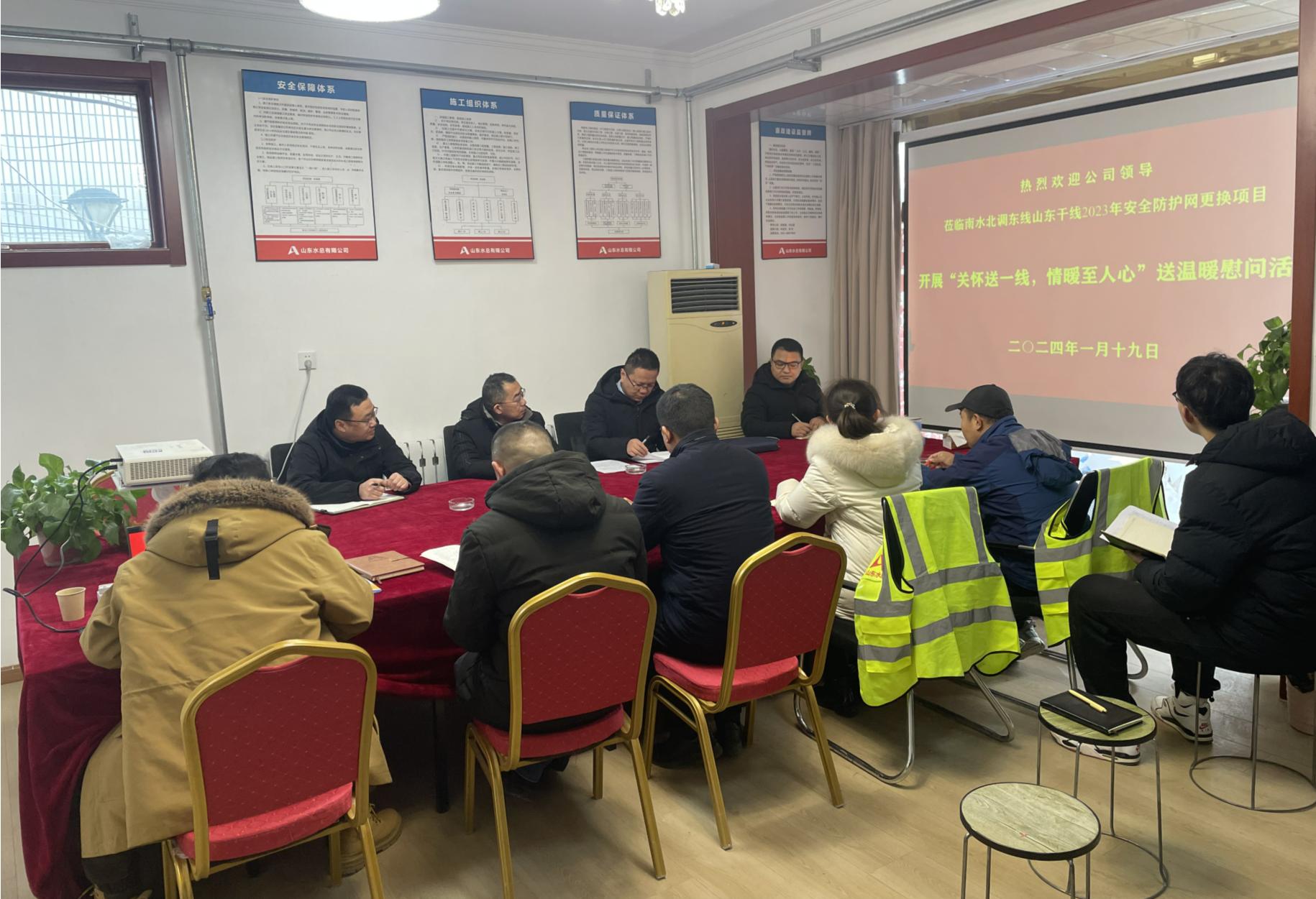 1月19日,公司党委委员、副总经理袁英杰,工程管理部相关人员一行到南水北调东线山东干线2023年安全防护网更换项目,开展“关怀送一线 情暖至人心”送温暖慰问活动