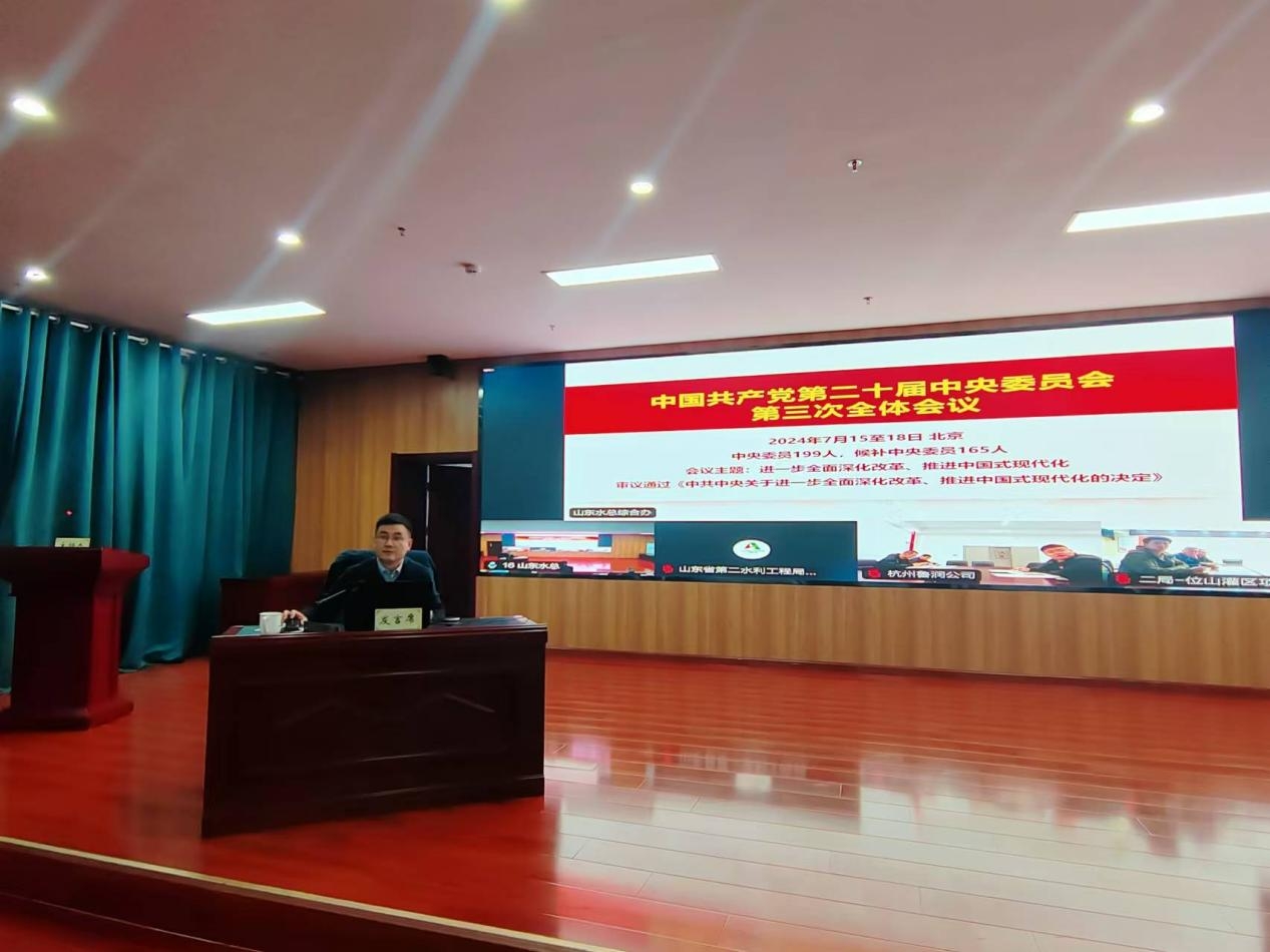 为深入学习贯彻落实党的二十届三中全会精神,按照山东高速集团党委统一部署,11月18日,山东水总公司党委组织举办了党的二十届三中全会精神学习班暨集中培训,教育引导广大党员干部深入领会党的二十届三中全会的重大意义和丰富内涵,切实把学习成效转化为工作实效,推动习近平总书记重要指示要求、全会各项部署及上级党委工作安排在公司落实落地。本次专题学习班为期三天,采取辅导报告讲座、分组集中学习、交流研讨等相结合方式。