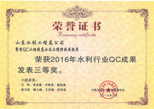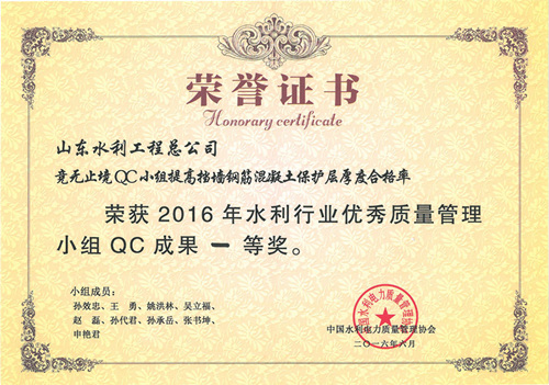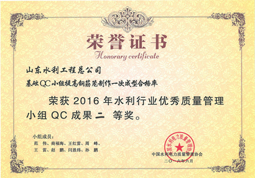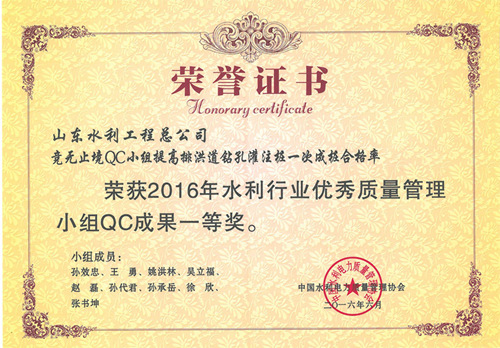 公司“提高排洪道钻孔灌注桩一次成桩合格率”等四项成果荣获2016年水利行业优秀质量管理小组QC成果奖
