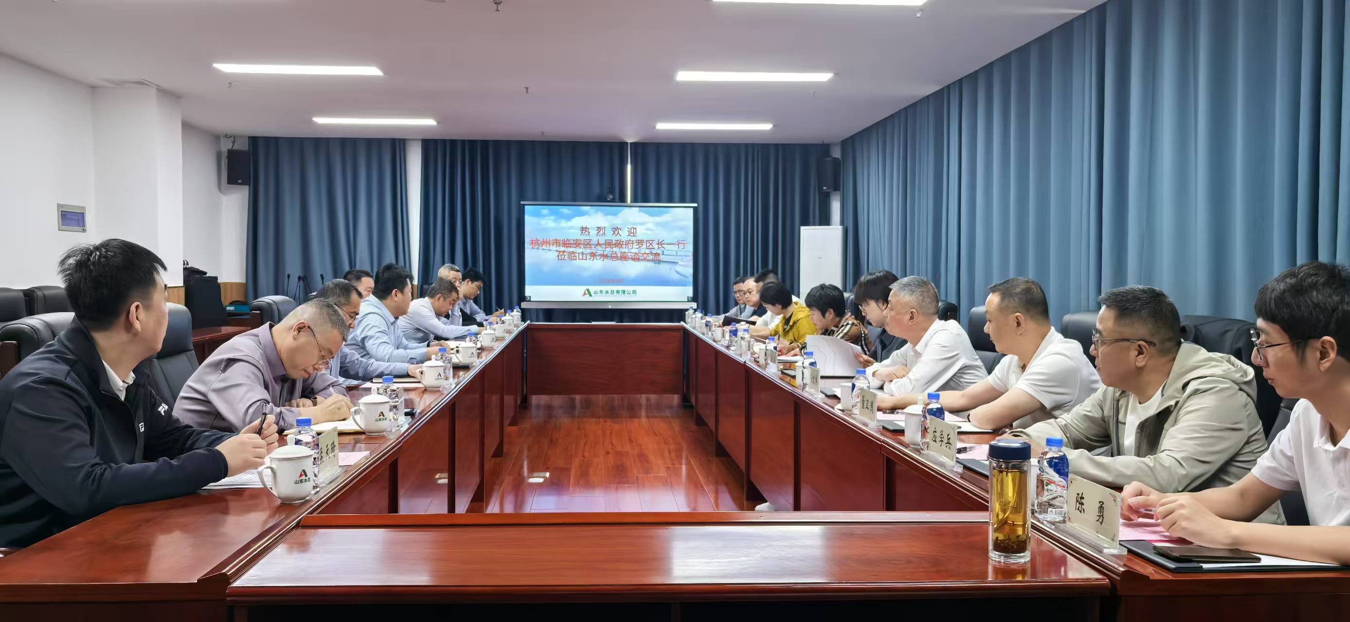 临安区水利水电局党委书记、局长汤文卓,临安区农业农村局党委书记、局长陶国英,临安区人民政府办公室副主任朱华,公司领导班子成员及相关部室负责人参加座谈。