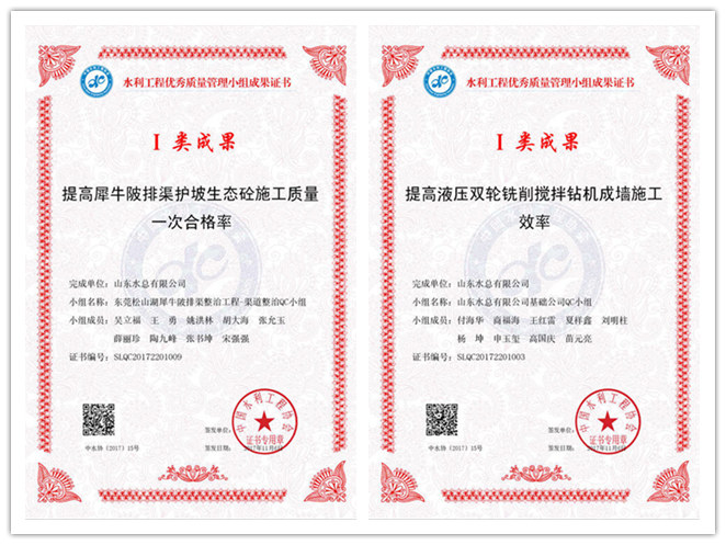 公司“提高犀牛陂排渠护坡生态砼施工质量一次合格率”等五项成果荣获水利工程优秀质量管理小组