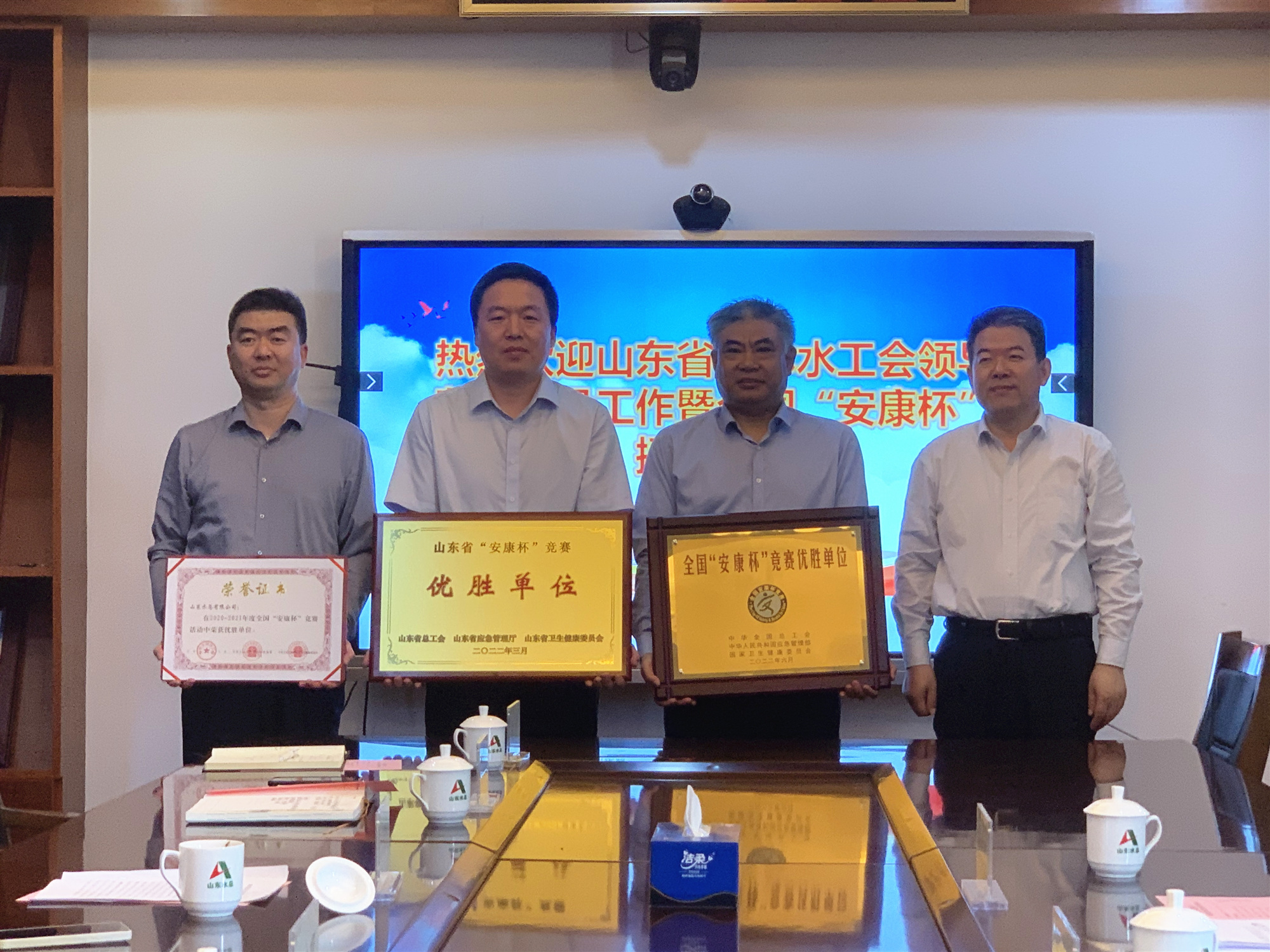 仪式上,刘深远汇报公司2022年度工会工作及“安康杯”竞赛活动开展情况,张志刚宣读全国、山东省“安康杯”竞赛活动表彰决定,山东水总公司荣获全国、山东省“安康杯”优胜单位的荣誉称号。